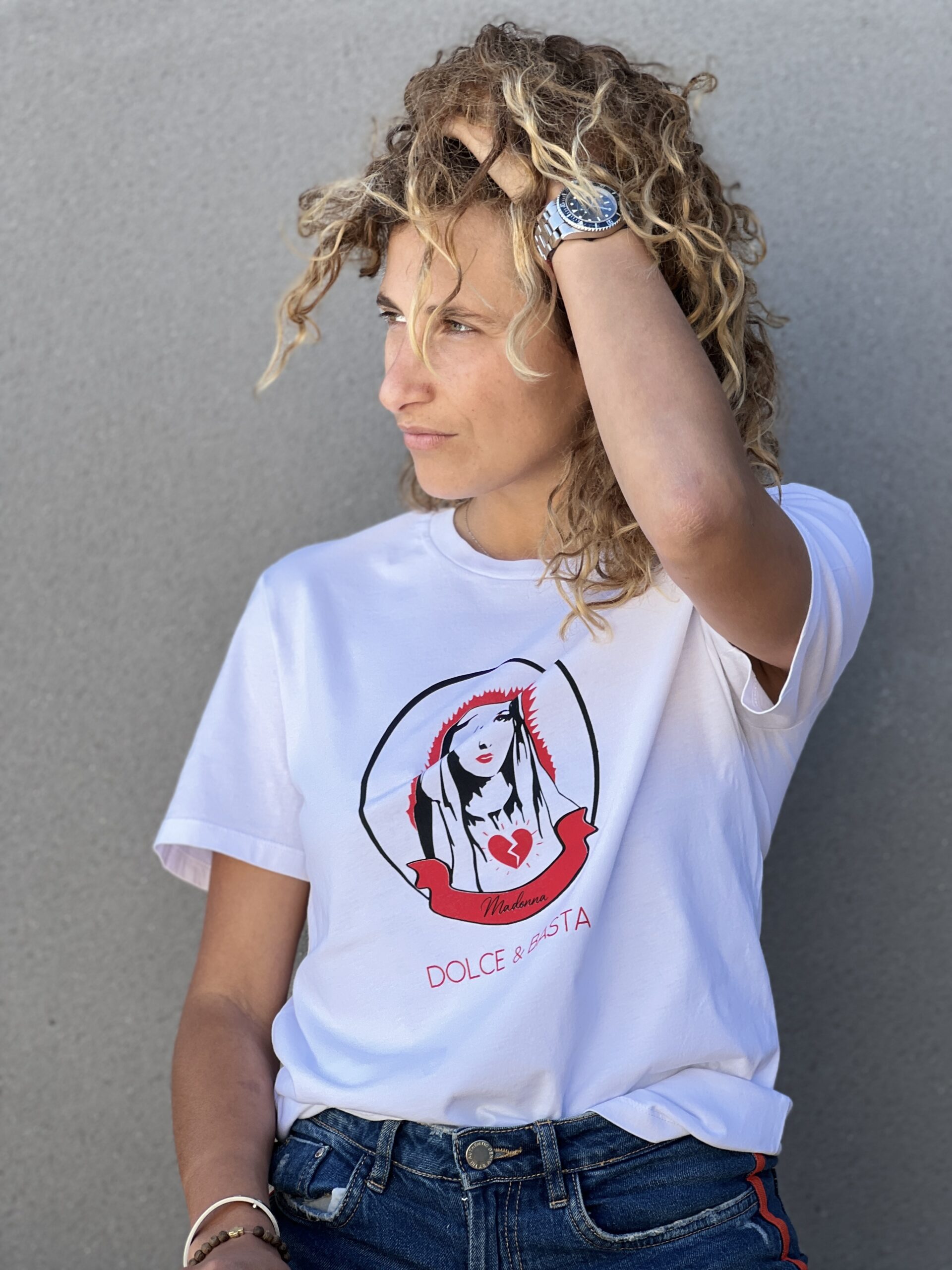 Ce modèle met en scène la vierge marie à la façon d’une célèbre marque italienne.
