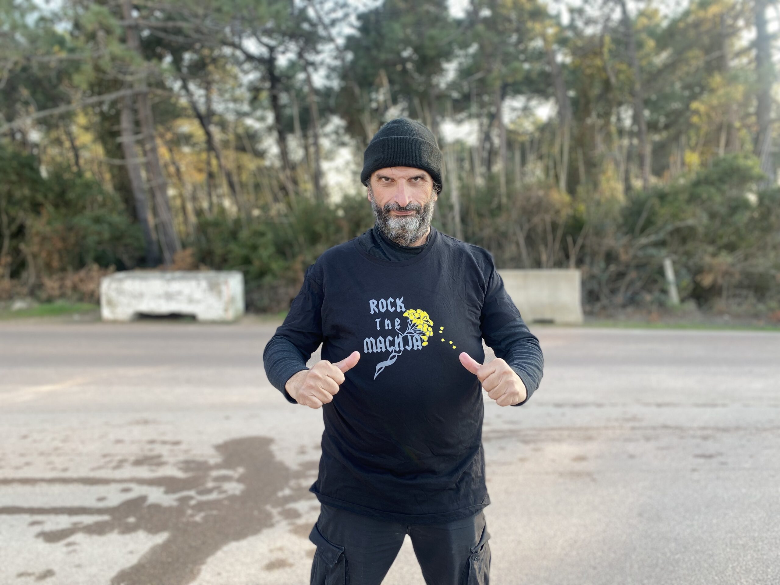 Le t shirt ROCK THE MACHJA illustre notre maquis par la fleur emblématique de la CORSE,  l’immortelle. LE coté ROCK se retrouve dans l’écriture du célèbre groupe AC/DC.